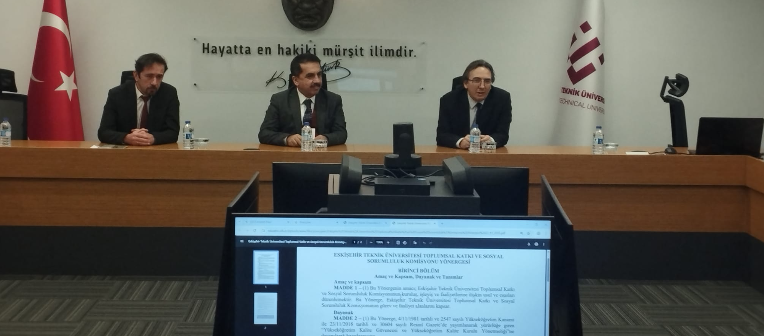 ESTÜ Toplumsal Katkı ve Sosyal Sorumluluk Komisyonu Rektör Yardımcımız ve Komisyon Başkanı Prof. Dr. Onur KAYA başkanlığında 03.02.2026 Salı günü saat 10:00'da aşağıdaki gündem maddeleri doğrultusunda, Rektörlük Binası B girişi (zemin kat) Senato Salonu'nda toplanmıştır.